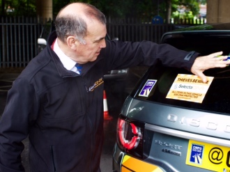 Deterrent warning signage indicating that the vehicle is marked was also placed in the car window.